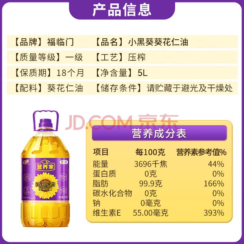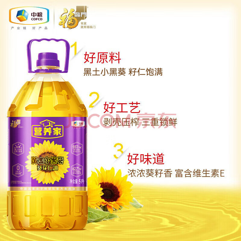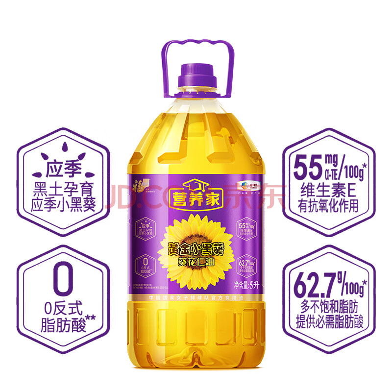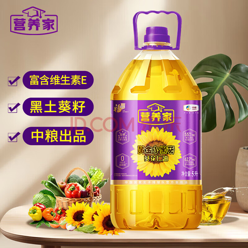 商品相册:营养家 食用油 黄金小黑葵 葵花仁油 5L 物理压榨一级 中粮出品第