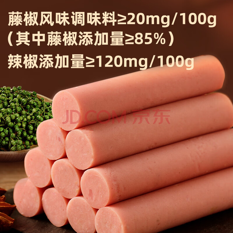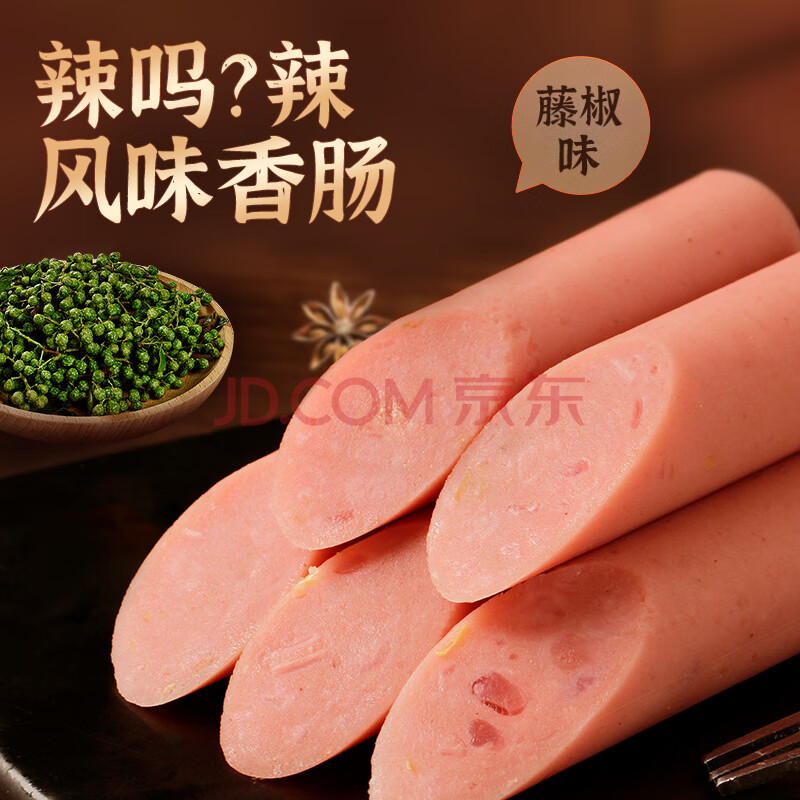 商品相册:双汇辣吗?辣 藤椒风味火腿肠香肠 32g*8支*5袋 整箱 休闲零食 即食第