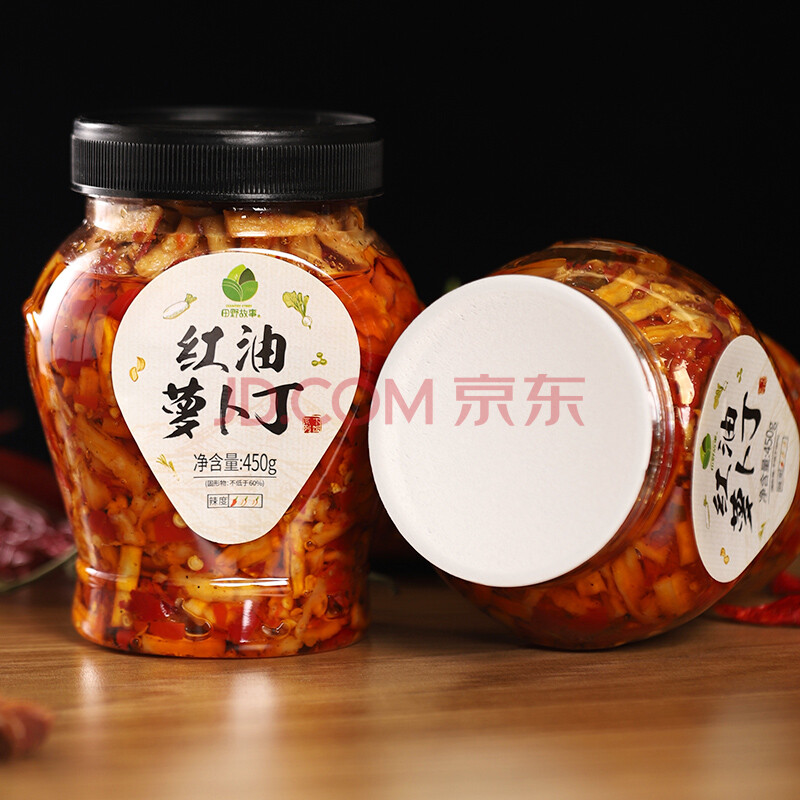 商品相册:田野故事 红油萝卜丁450g 香辣爽脆佐餐下饭秘制调味品大瓶装即食咸菜配粥第