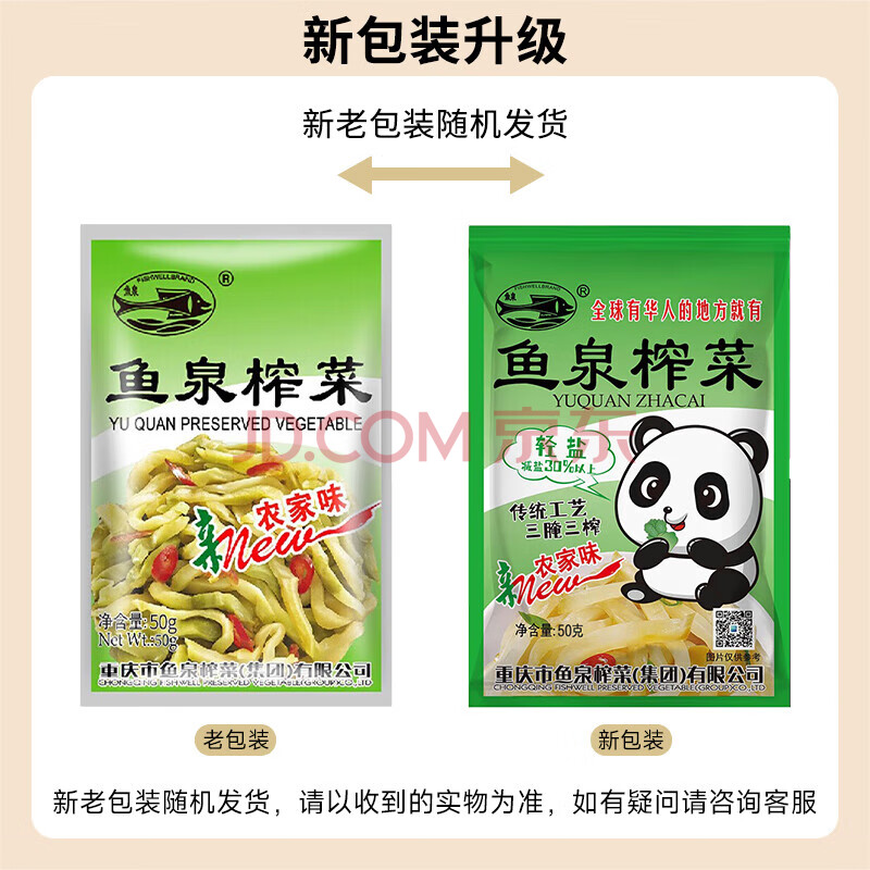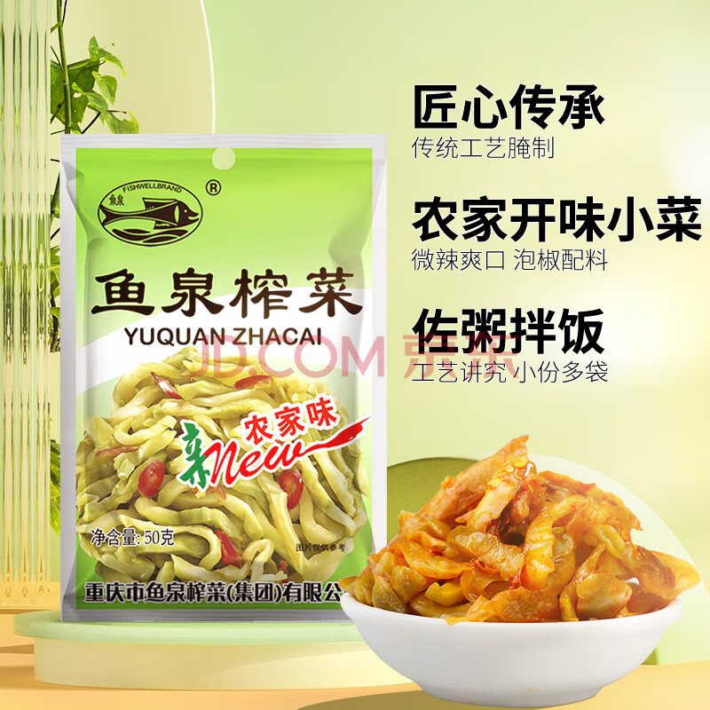 商品相册:鱼泉榨菜 下饭菜 新农家味榨菜丝 50g*10袋 重庆特产 早餐小菜第