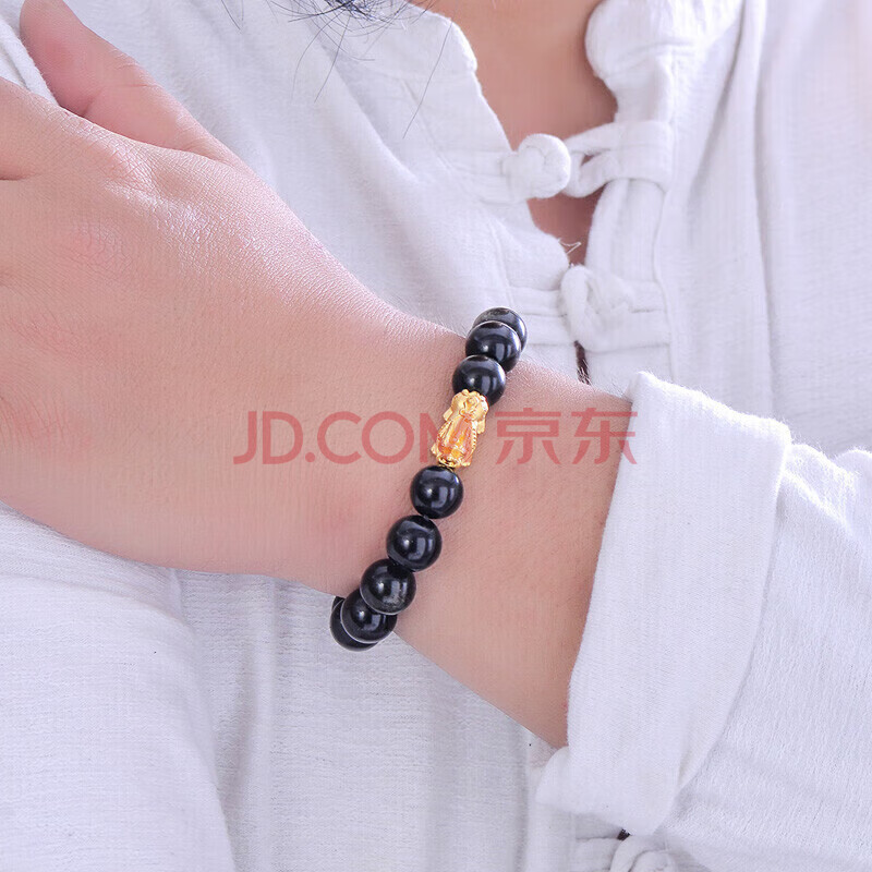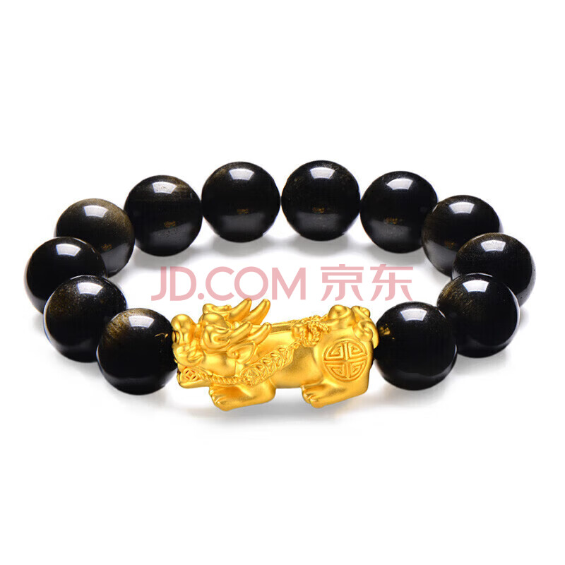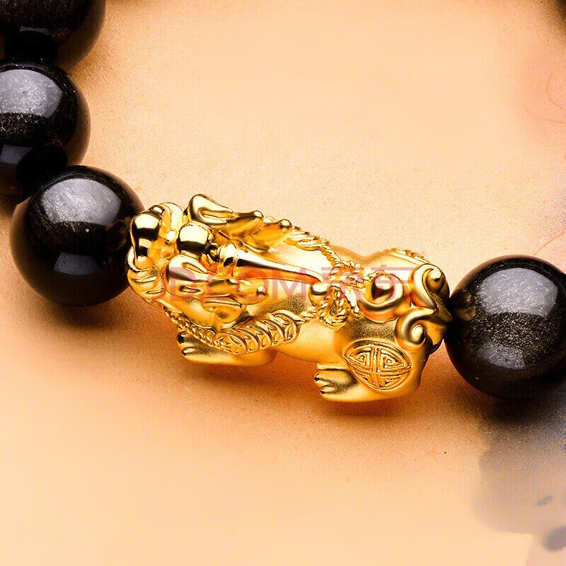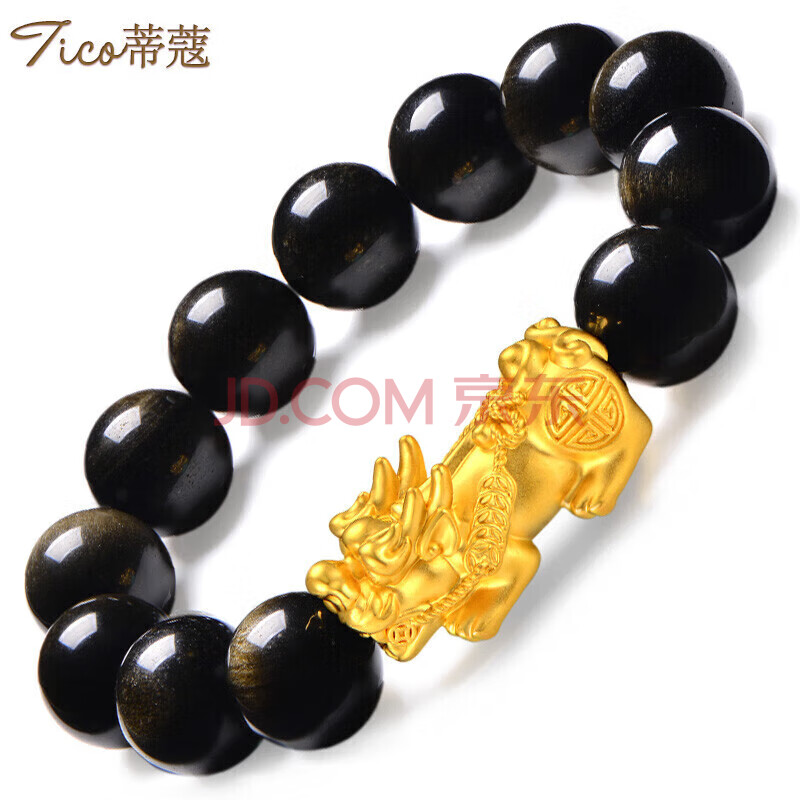商品相册:蒂蔻(Tico)足金招财貔貅黄金转运珠手链男黑曜石手串3D硬金饰品生日礼物第