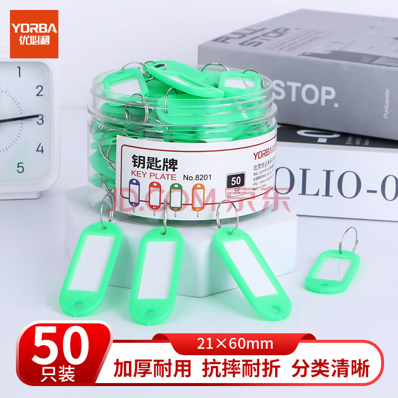 商品相册:优必利 钥匙牌 加厚手提钥匙号码牌标签分类管理钥匙扣 酒店宾馆房东大钥匙挂件 50只/桶 8201绿色第