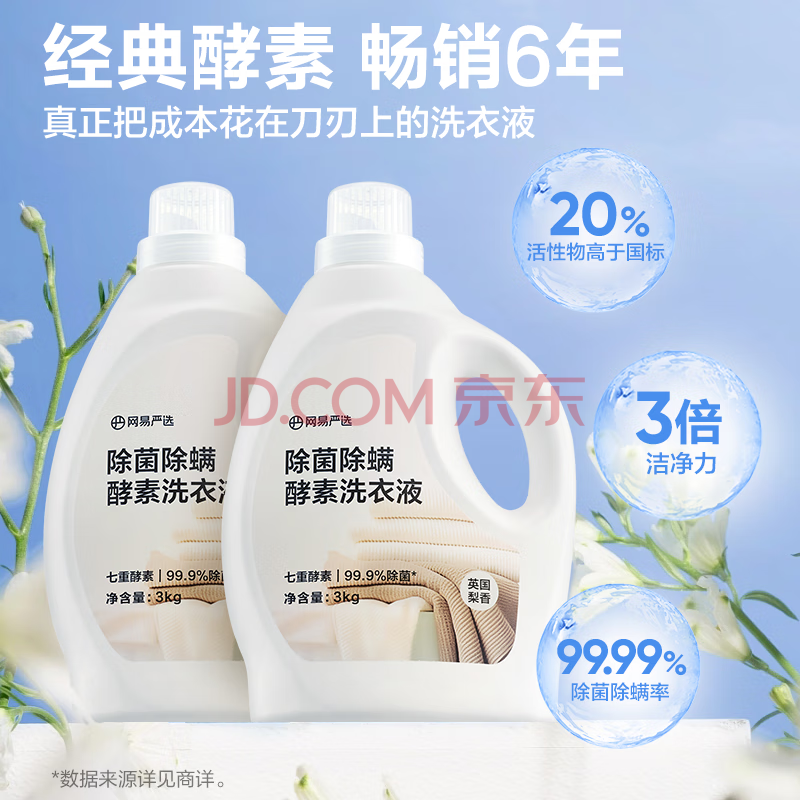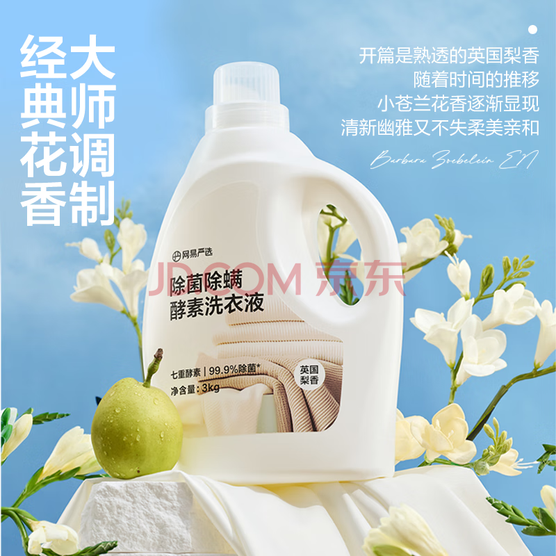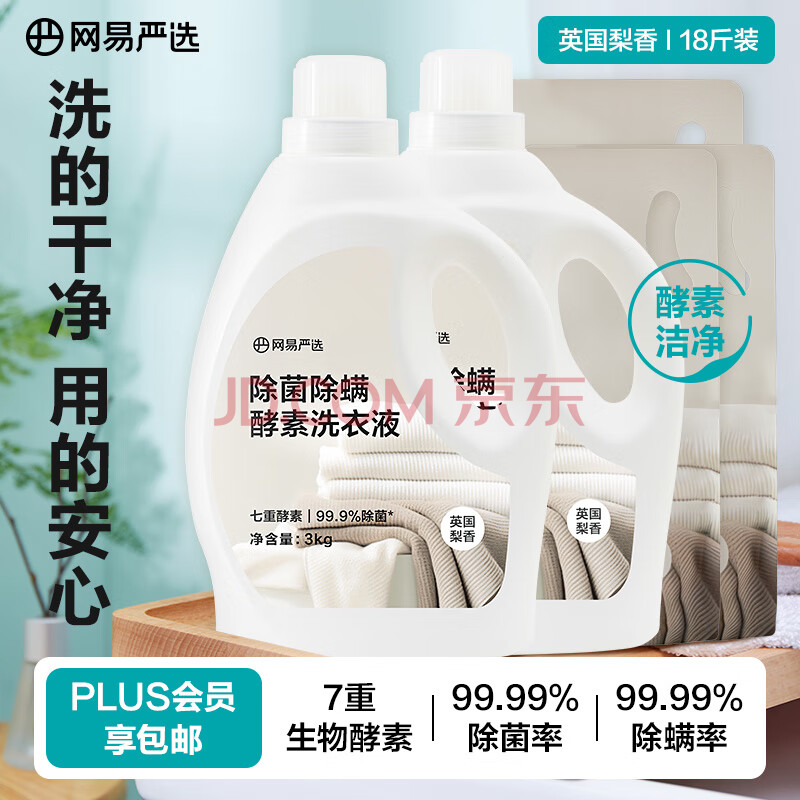 商品相册:网易严选英国梨香 酵素洗衣液18斤 除菌除螨 强效去污 护衣护色 洗衣液第