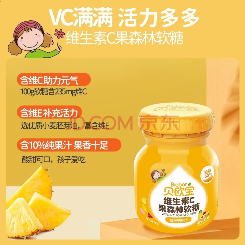 商品相册:贝欧宝维生素C软糖 96g 综合口味 减糖版 营养糖果 休闲零食第