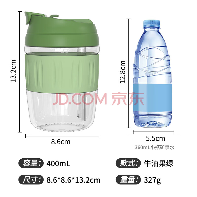商品相册:JEKO&JEKO玻璃杯水杯女咖啡杯便携吸管杯子女士成人随行茶杯 400mL牛油果绿第