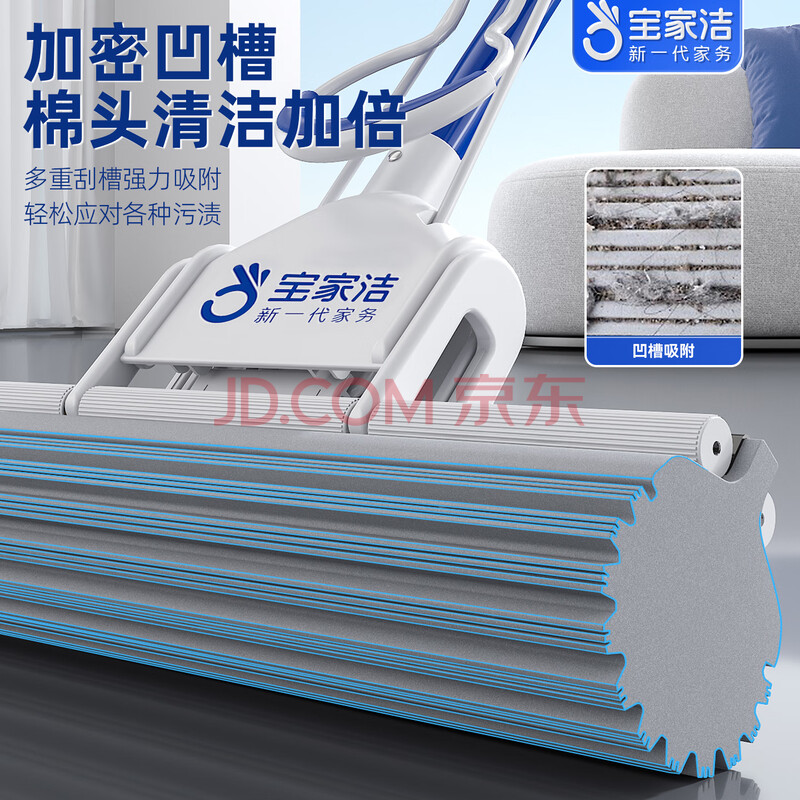 商品相册:宝家洁胶棉拖把40cm1棉头杆长130cm速软棉头PVA胶棉J10【杨幂同款】第