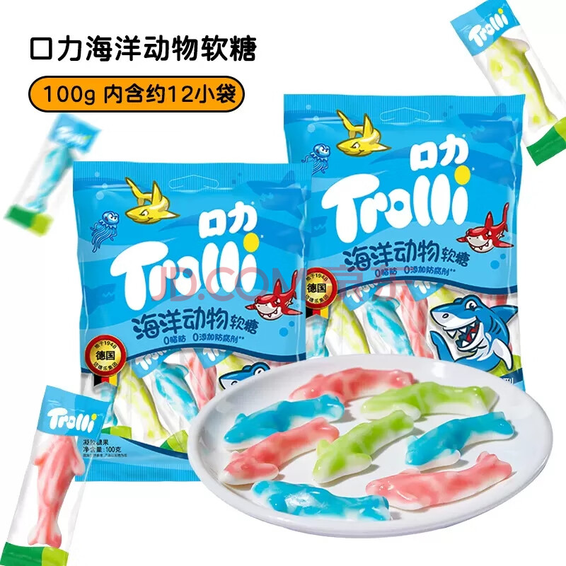 商品相册:Trolli 德国口力 海洋动物造型软糖 100g 儿童零食糖果 0脂肪 休闲解馋第