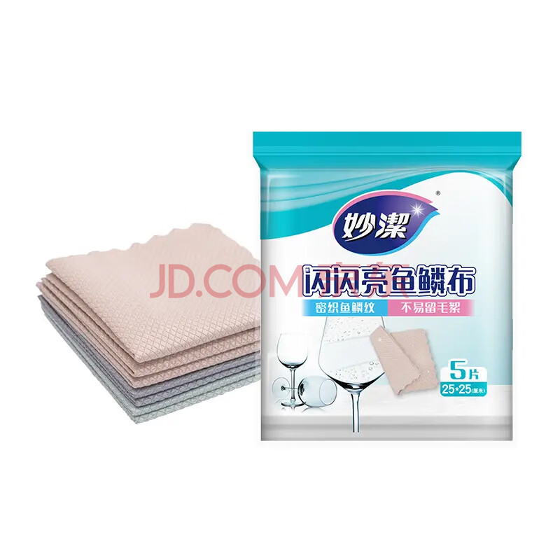 商品相册:妙洁闪闪亮鱼鳞抹布 25*25cm5片装 洗碗厨房擦拭布 玻璃等光滑表面第