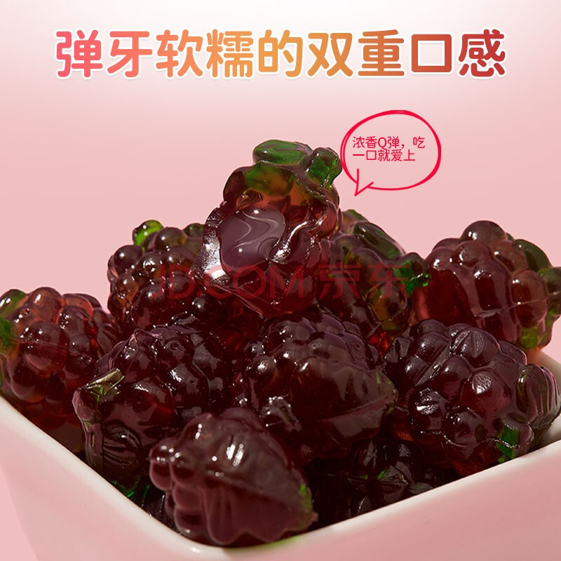 商品相册:阿麦斯(amos) 爆汁果汁软糖 65g/袋 葡萄味休闲零食 橡皮糖 逼真水果造型糖果第