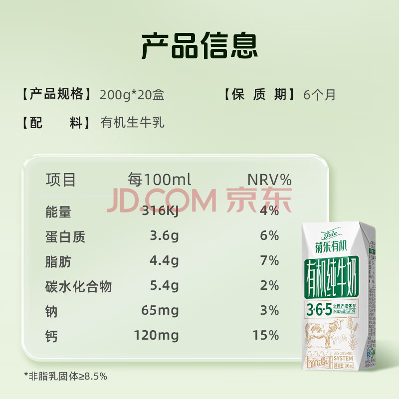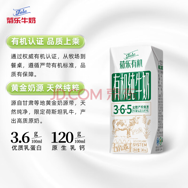 商品相册:菊乐(JULE)有机纯牛奶200ml*20盒 3.6g优质乳蛋白送礼盒装第