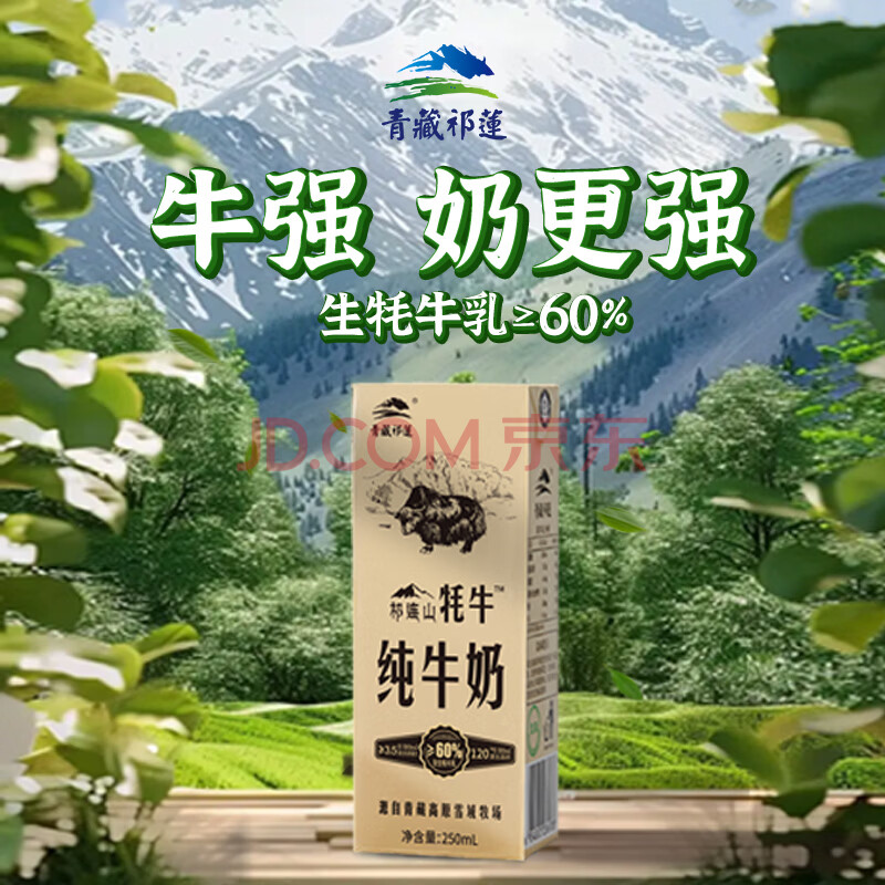 商品相册:青藏祁莲祁连山牧场纯牛奶250ml*12盒 牦牛奶含量≥60% 送礼礼盒第