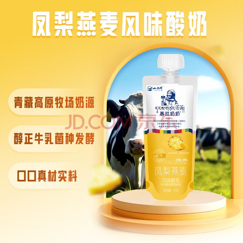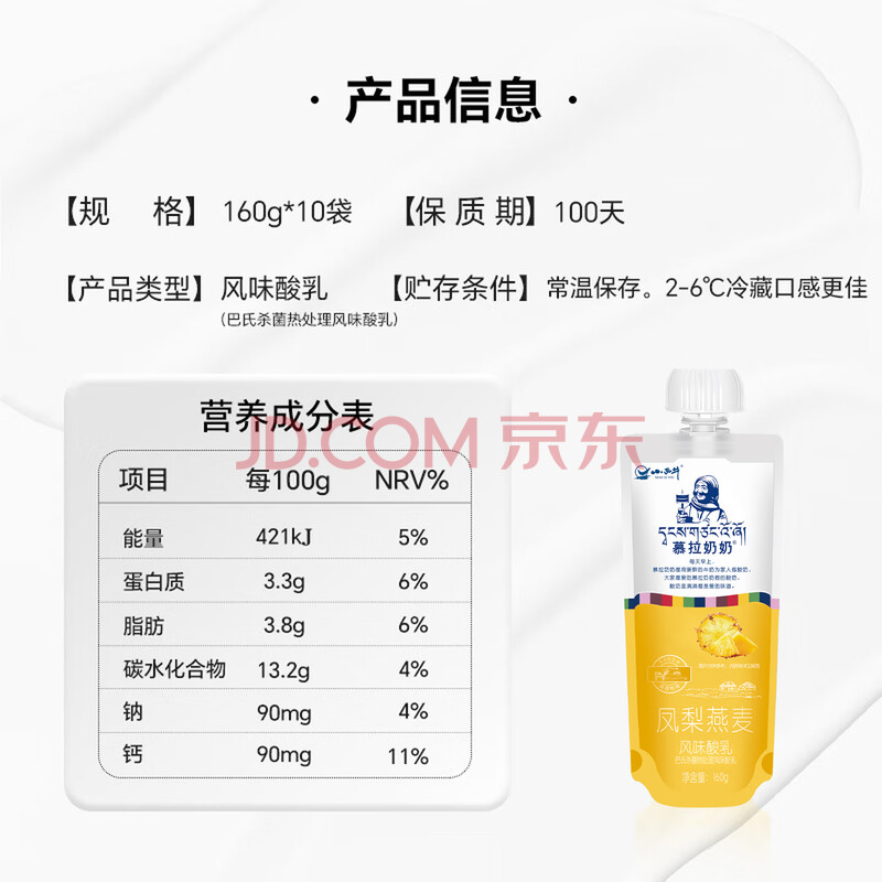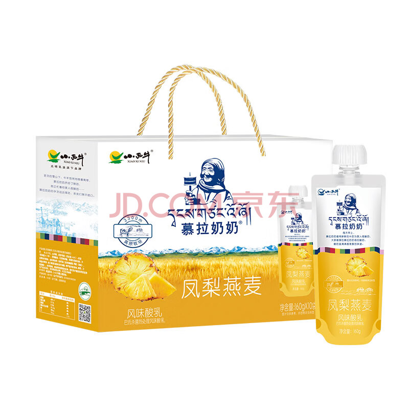 商品相册:小西牛青藏奶源慕拉酸奶凤梨燕麦口味160g*10袋整箱第1张/共9