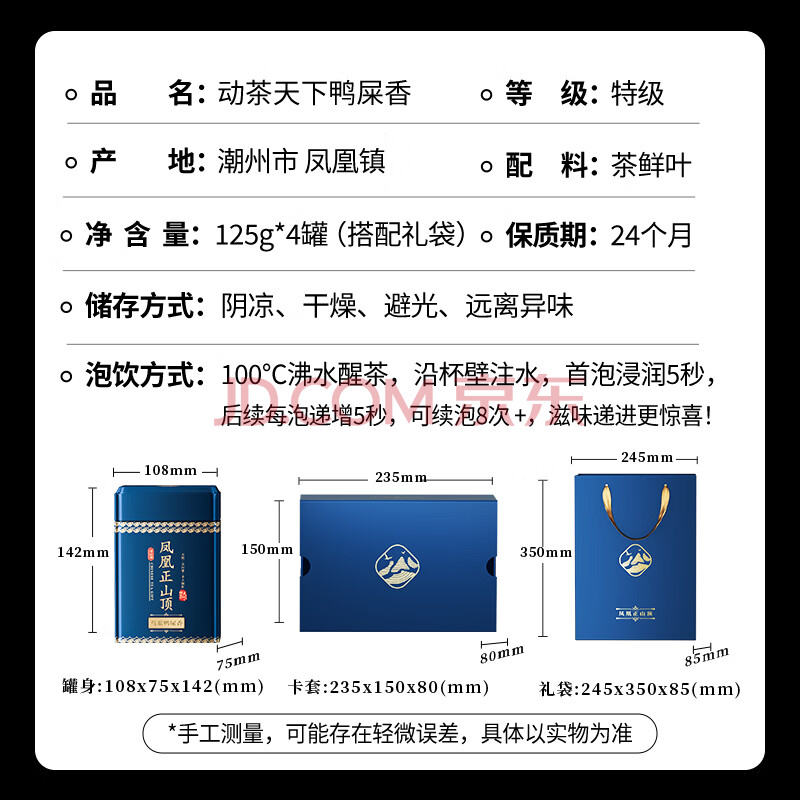 商品相册:正山顶茶叶特级潮州凤凰单枞乌龙茶鸭屎香单丛礼盒装500g乌岽春茶礼第