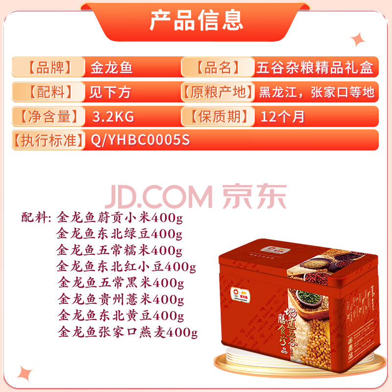 商品相册:金龙鱼礼盒 五谷杂粮礼盒6.4斤 精品礼盒 400g*8 第