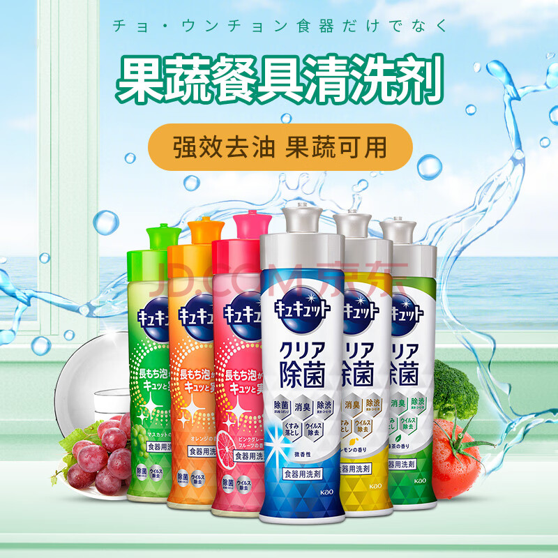 商品相册:花王(KAO)柠檬香洗洁精220ml*2瓶 去油污清洁洗碗液餐具果蔬清洗剂第