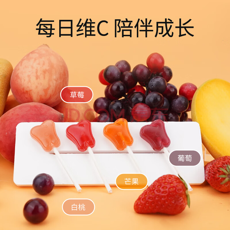 商品相册:倍齿乐 果VC儿童棒棒糖 8g*16支 草莓/桃子/葡萄/芒果 0蔗糖棒棒糖第