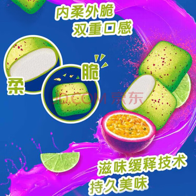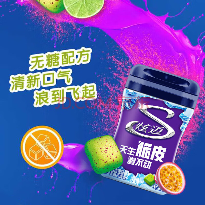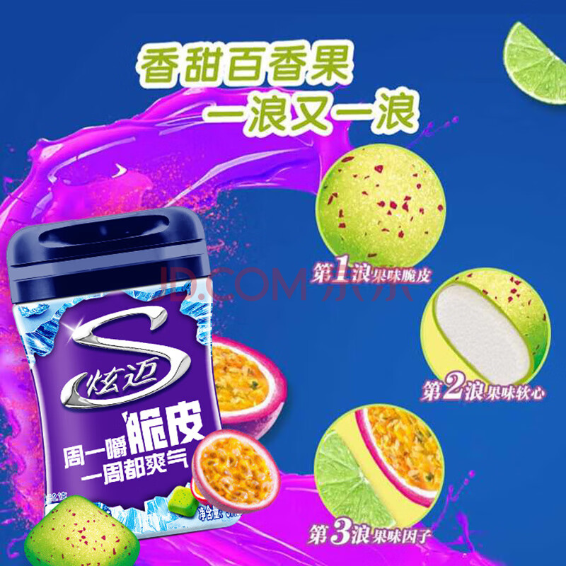商品相册:炫迈 脆皮无糖口香糖 果味浪热情百香果味 37.8g1瓶装 糖果 休闲零食第