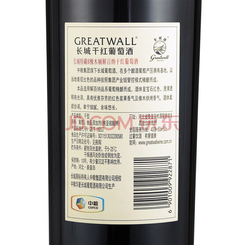 商品相册:长城耀世东方特藏8橡木桶解百纳干红葡萄酒750ml*6瓶整箱装红酒第