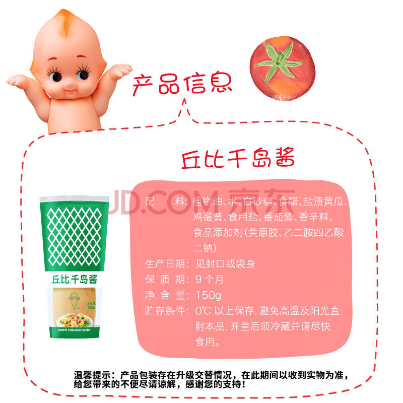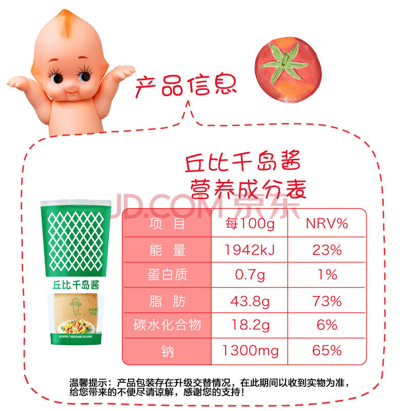 商品相册:丘比(KEWPIE)沙拉酱 千岛口味 调味品 轻食餐水果蔬菜番茄酱 150g*1瓶第