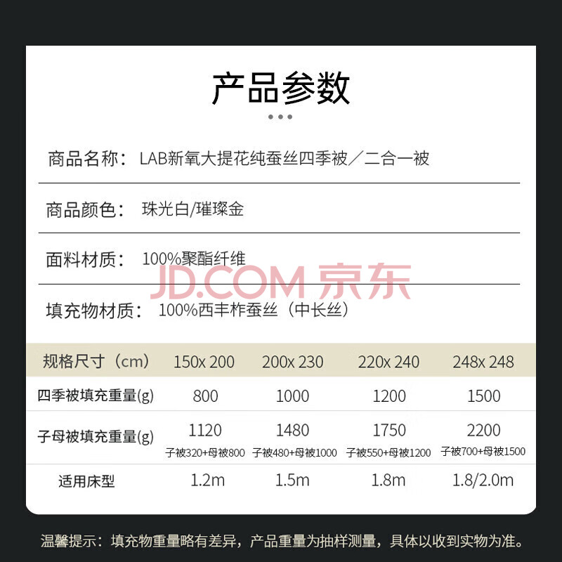 商品相册:梦洁家纺蚕丝被子新氧提花透气空调四季被珠光白填充物约1000g 200*230cm第