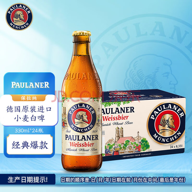 商品相册:保拉纳(Paulaner)柏龙 小麦白啤酒 330ml*24瓶 德国进口啤酒 京东自营踏春送礼第1张/共4