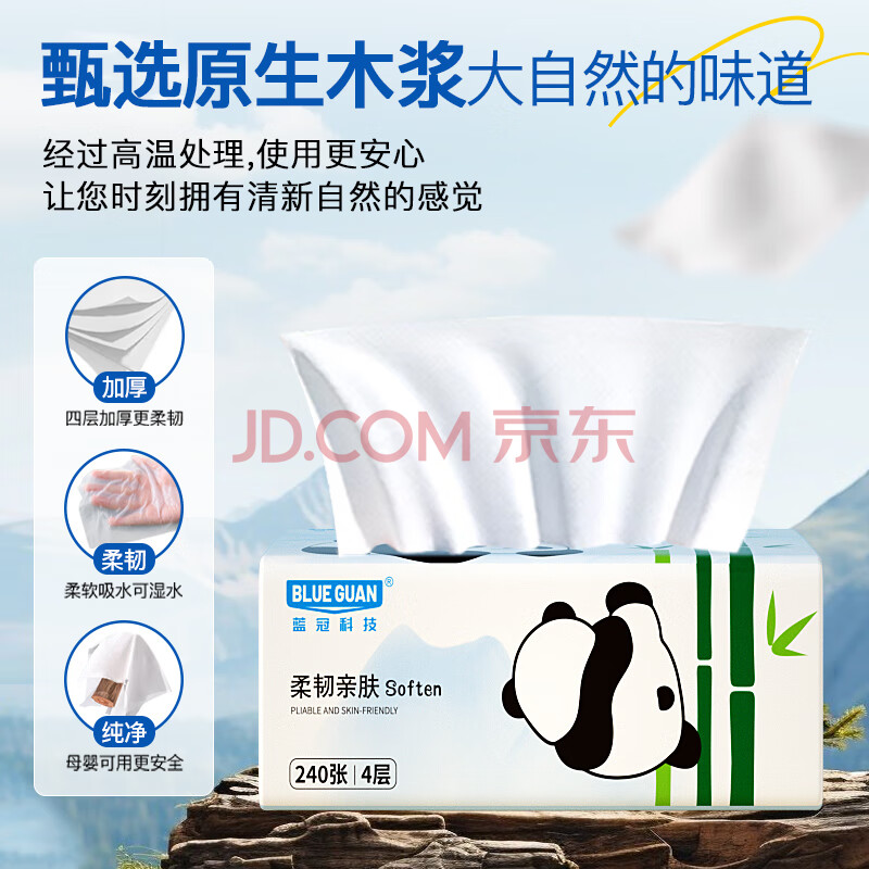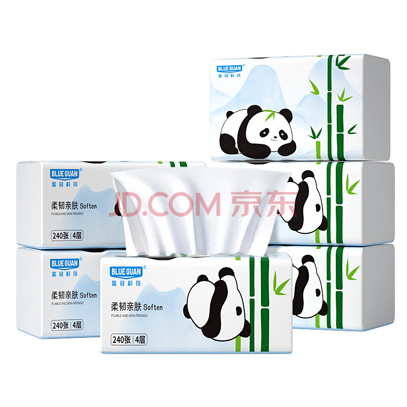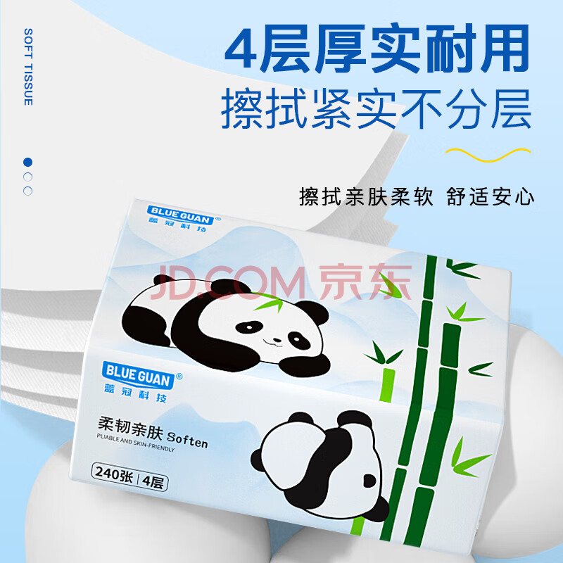 商品相册:BLUEGUAN蓝冠纸巾抽纸整箱批发 4层240张36包 擦手纸卫生纸家用清洁纸品第
