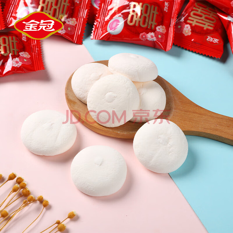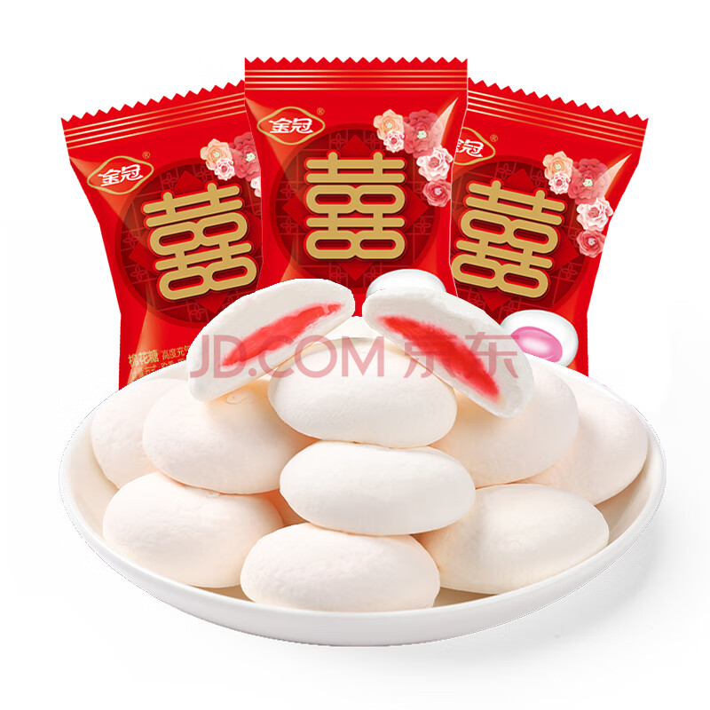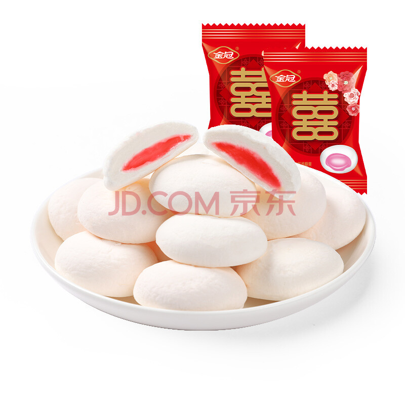 商品相册:金冠 双喜夹心棉花糖 1kg 约140粒 结婚喜糖 婚庆招待糖果 休闲零食第