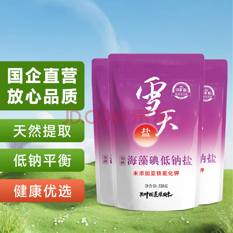 商品相册:雪天海藻碘低钠盐320g*3【加碘】食用盐 家用烹饪调味品调料 深井岩盐第