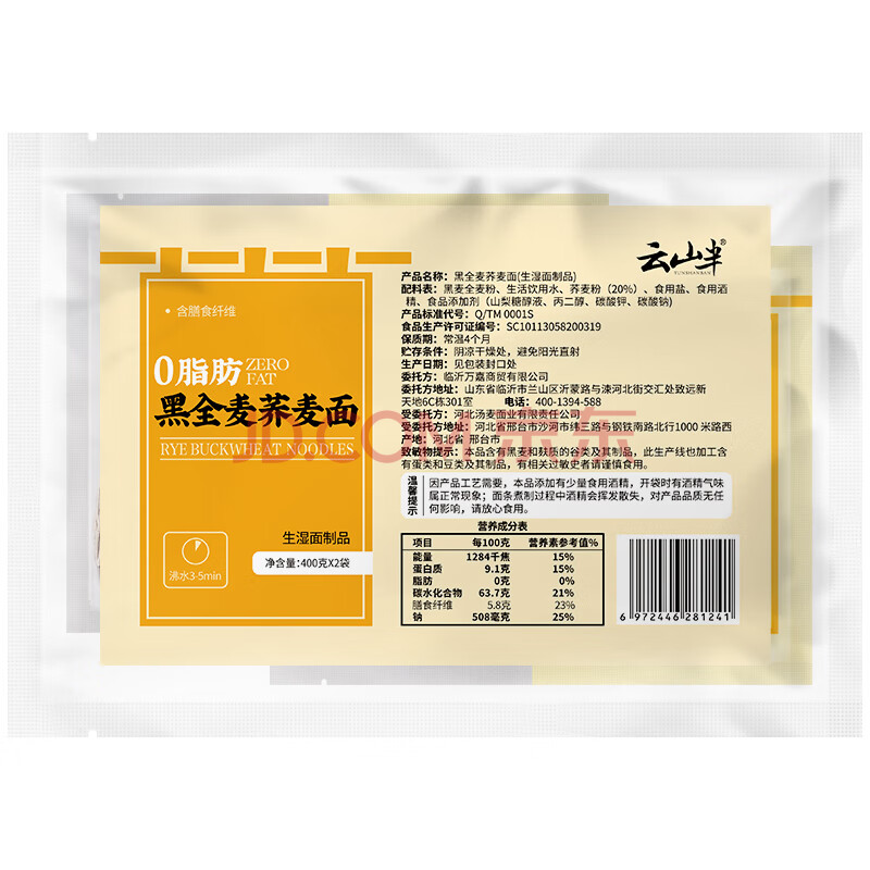 商品相册:云山半0脂肪黑全麦荞麦面半干鲜面条低脂杂粮拌挂面代餐粗粮主食400g*2第