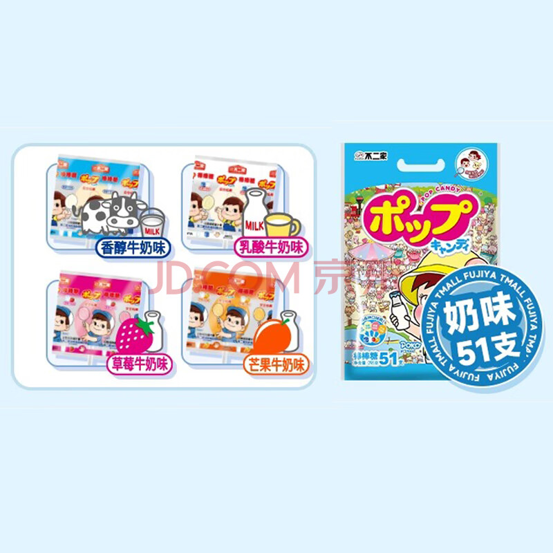 商品相册:不二家 混合牛奶味棒棒糖 295g(约51支) 儿童糖果 休闲零食 喜糖 礼物第