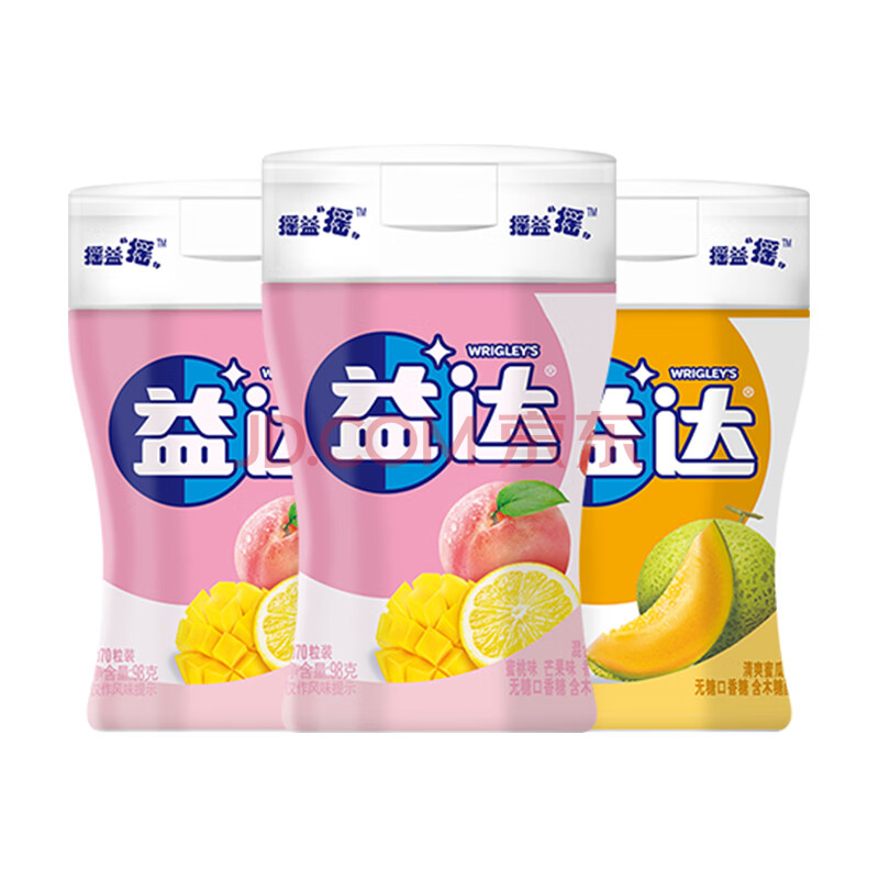 商品相册:益达无糖口香糖约70粒98g*3瓶 接吻糖口气清新糖休闲零食糖果第
