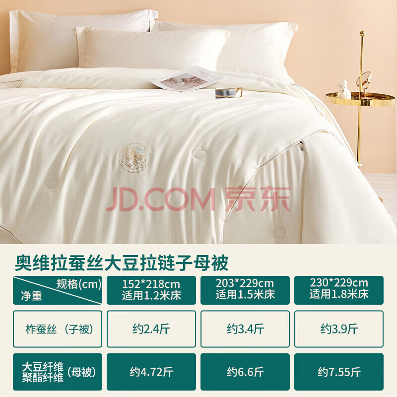 商品相册:多喜爱100%蚕丝20%大豆二合一拉链子母被芯 秋冬季厚被子10斤203*229cm第