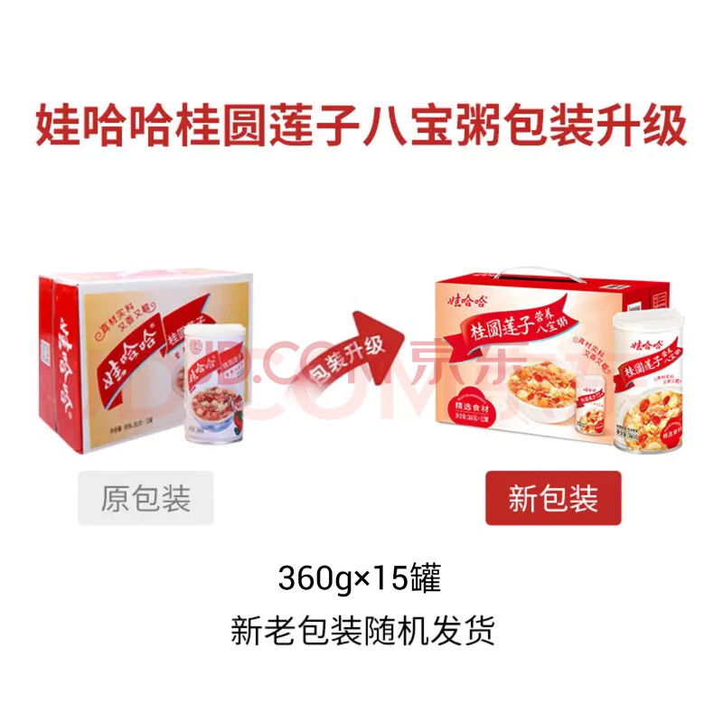 商品相册:娃哈哈【节日礼盒】桂圆莲子八宝粥360g*15罐 五谷营养早餐速食即食礼盒第