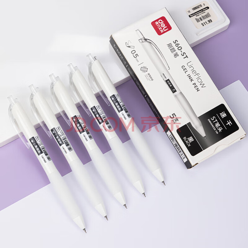 商品相册:得力(deli)速干顺滑中性笔小白笔 0.5mmST笔头学生刷题笔考试笔 黑色5支/盒 S60-ST第