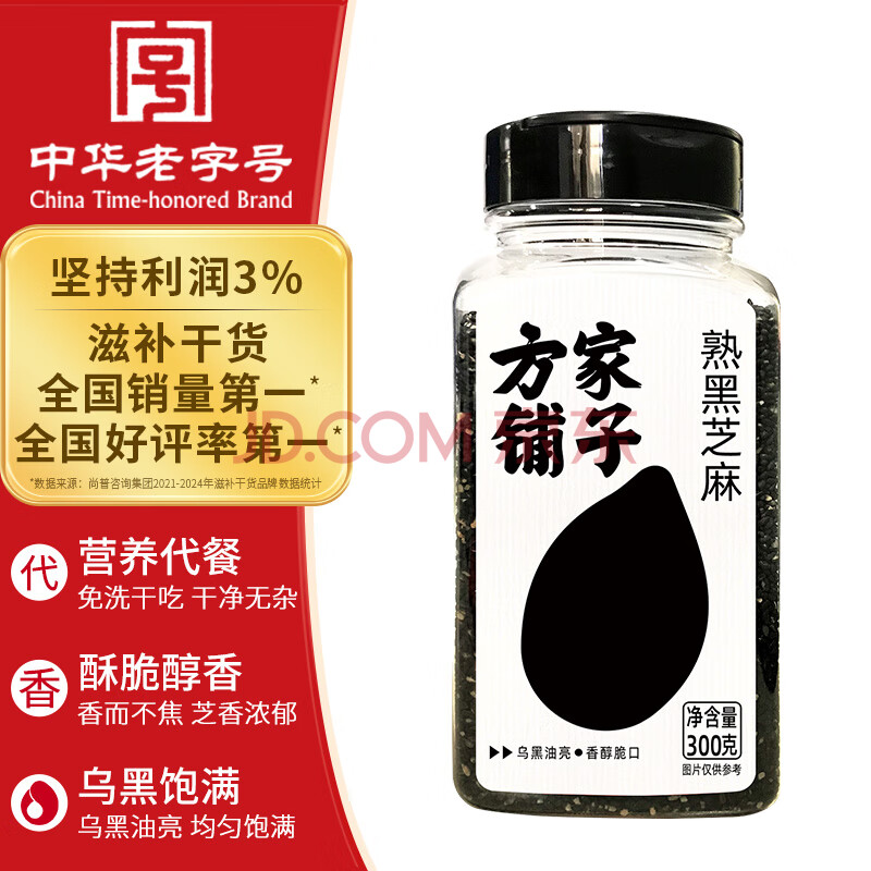 商品相册:方家铺子中华老字号 熟黑芝麻300g 低温炒制 代餐干吃五谷杂粮 粗粮第