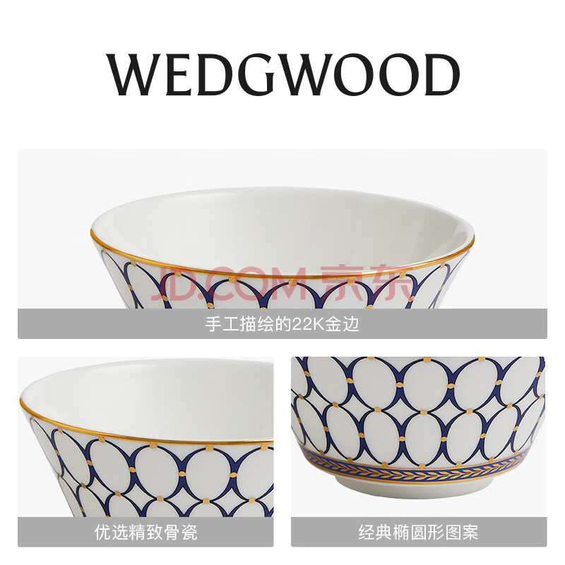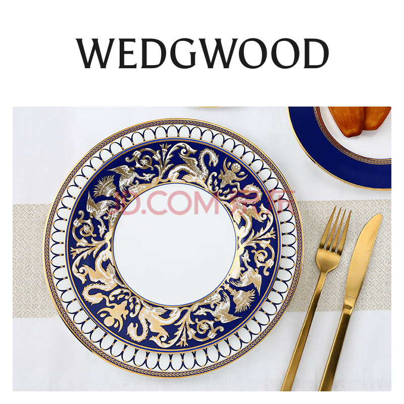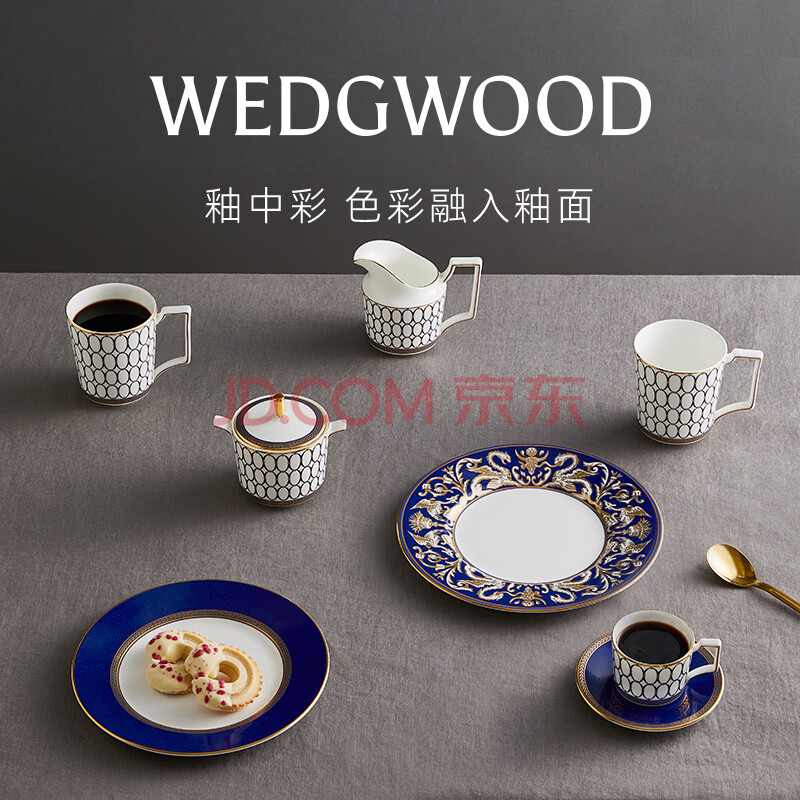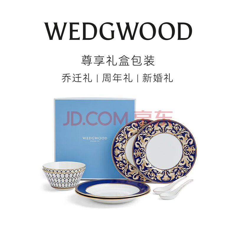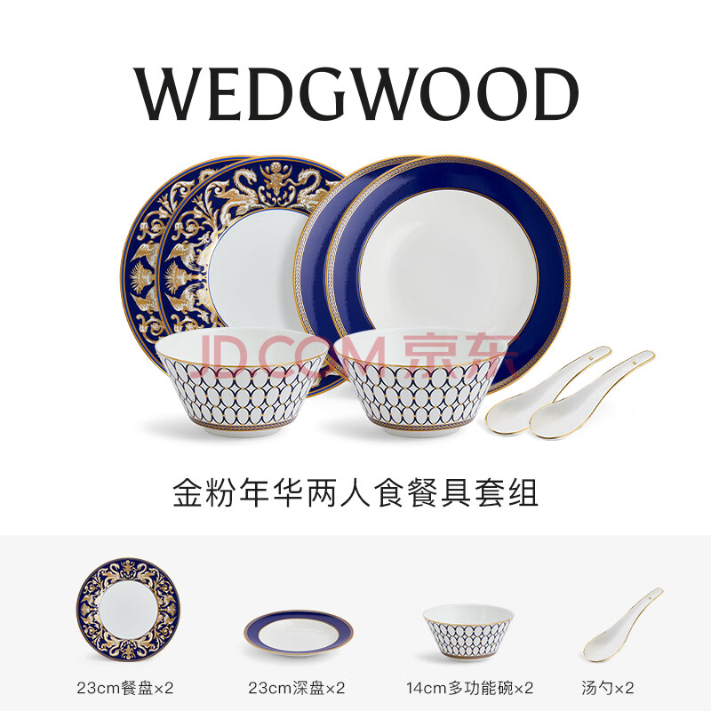 商品相册:Wedgwood金粉年华午夜蓝两人食碗盘汤勺8件套骨瓷餐具套装家用餐碗餐盘第1张/共5