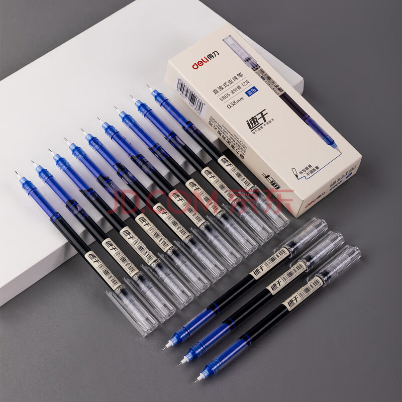商品相册:得力(deli) 中性笔 全针管无印风水笔 0.38mm直液笔签字笔 走珠笔 会议笔 蓝色 12支/盒 DL-S865第