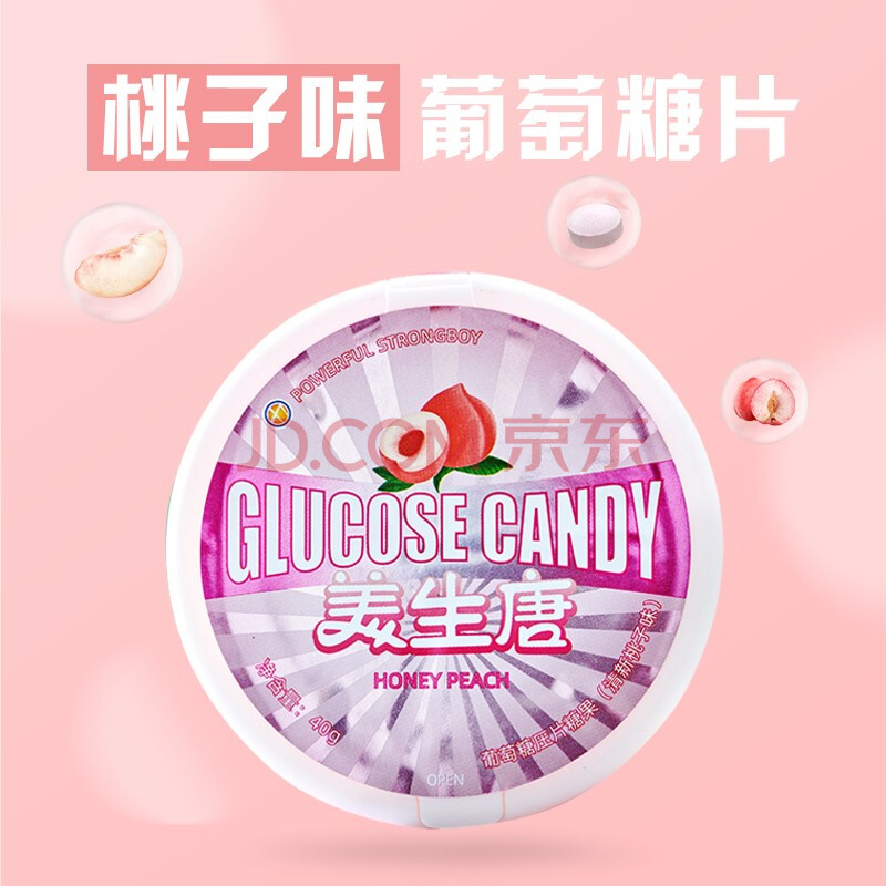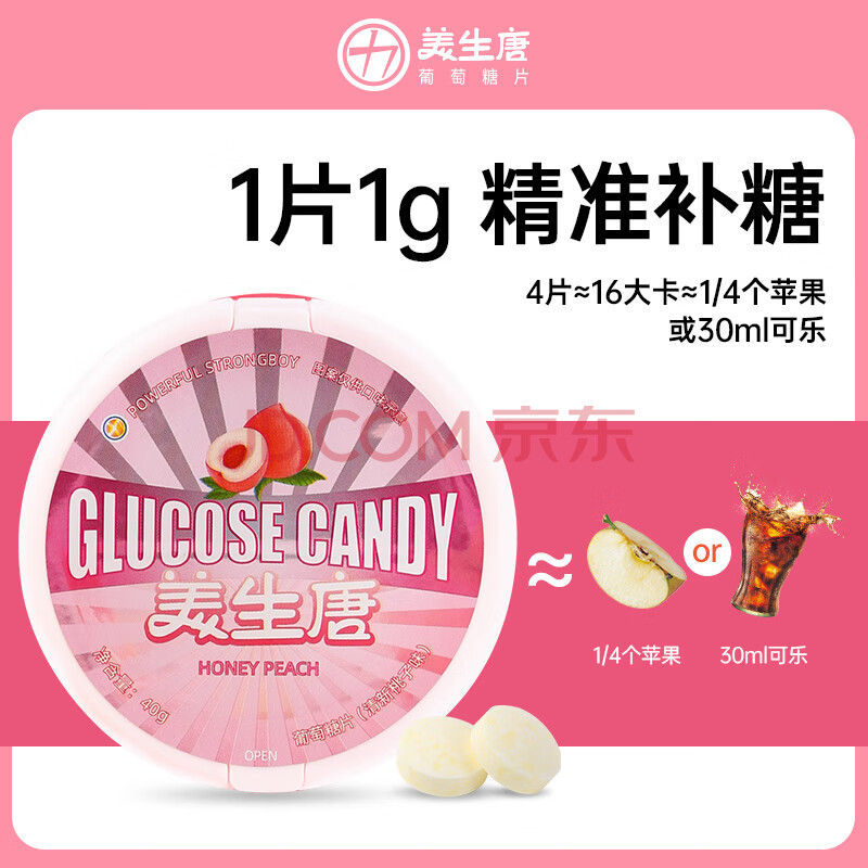 商品相册:美生唐葡萄糖片 40g 清新桃子味 低血糖头晕 便携补充能量 零食压片糖果第1张/共6