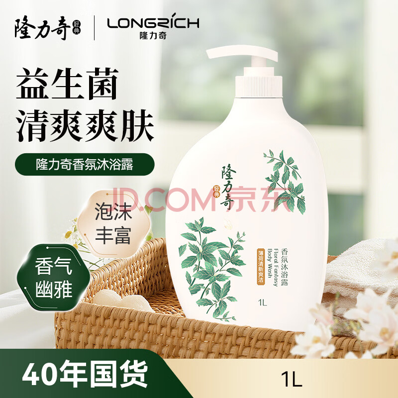 商品相册:隆力奇薄荷爽肤沐浴露清新爽洁香体清洁男女士家庭大瓶装1L第