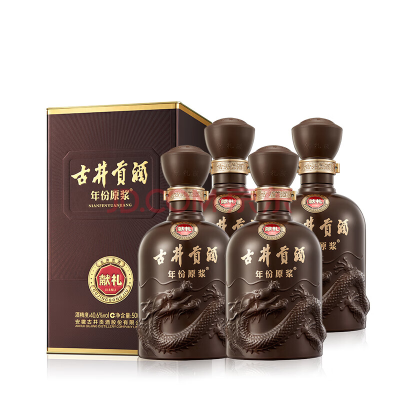 商品相册:古井贡酒 年份原浆献礼 浓香型白酒 40.6度 500mL*4瓶 整箱装第