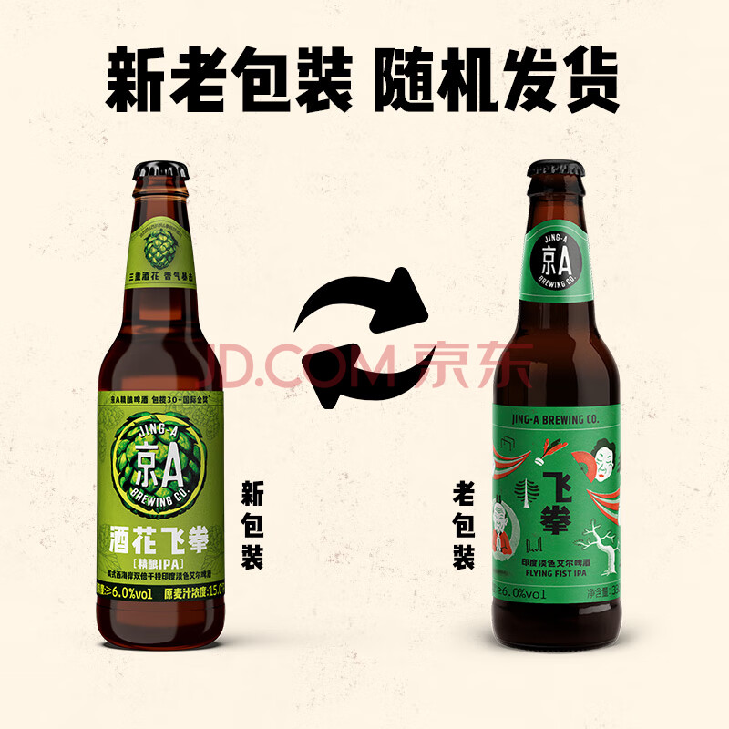 商品相册:京A酒花飞拳美式精酿啤酒330ml*6瓶新老包装随机发货踏春送礼第