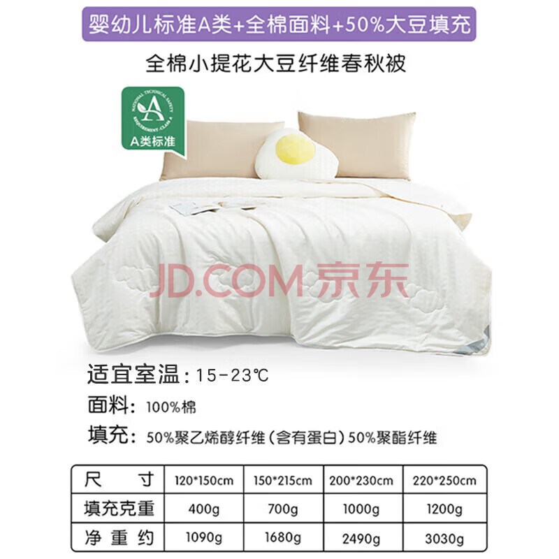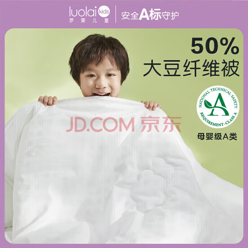 商品相册:罗莱儿童 提花 A类全棉50%大豆纤维被 春秋被 3.3斤150*215cm白色第
