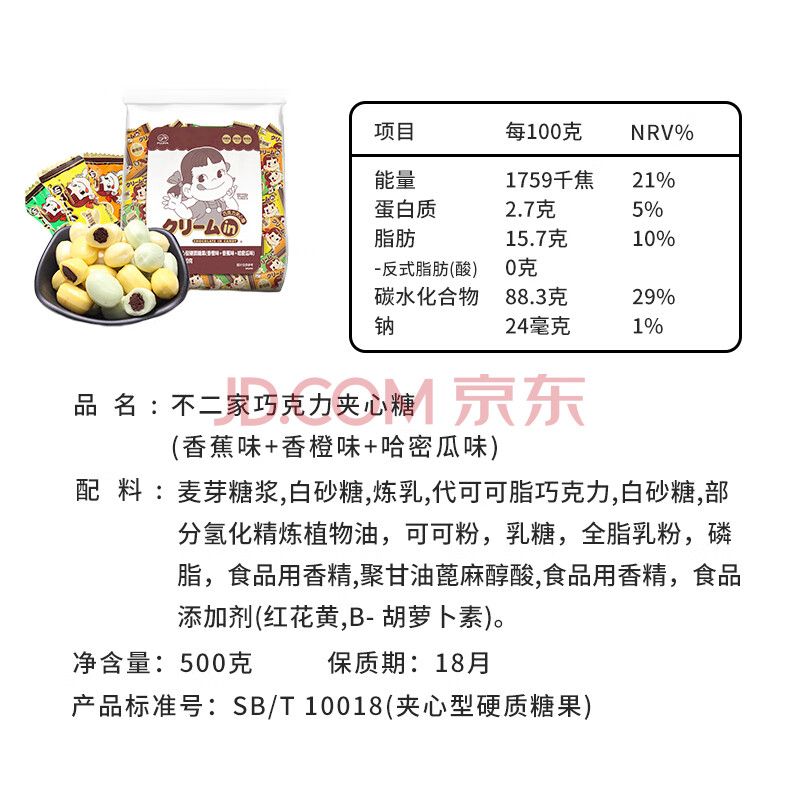 商品相册:不二家 巧克力夹心糖 500g(约115颗) 儿童糖果 喜糖 休闲零食 零食 礼物第