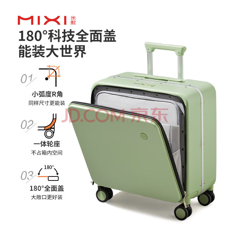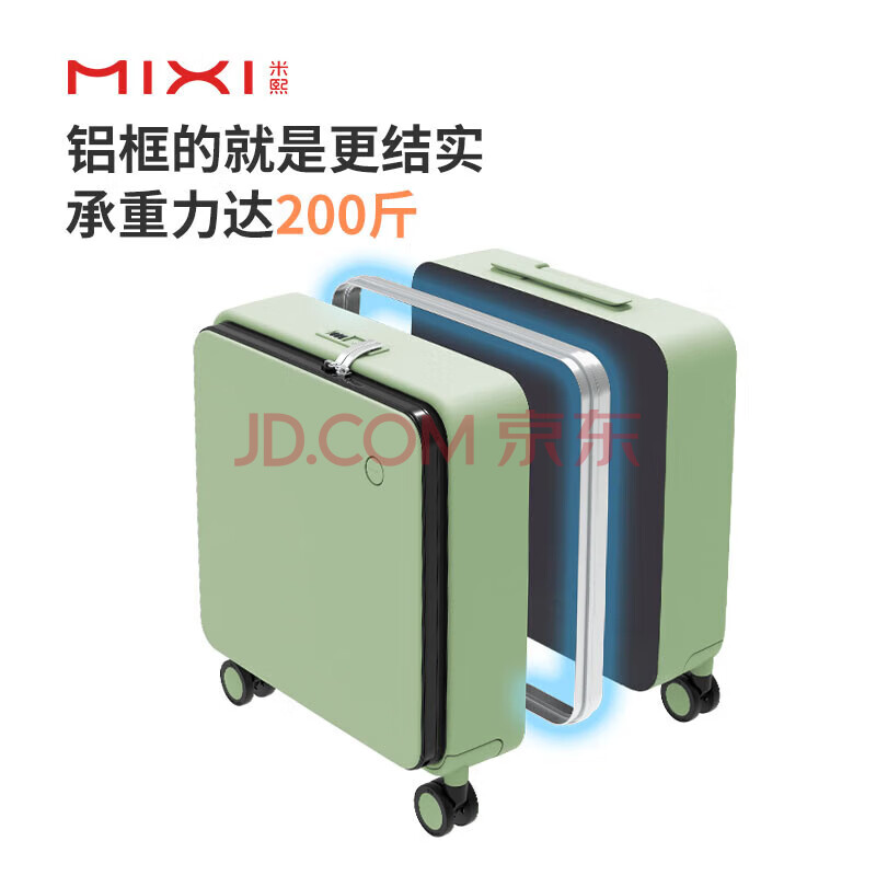 商品相册:米熙前开盖拉杆箱子行李箱大容量铝框箱男旅行箱包女18英寸牛油果绿60第