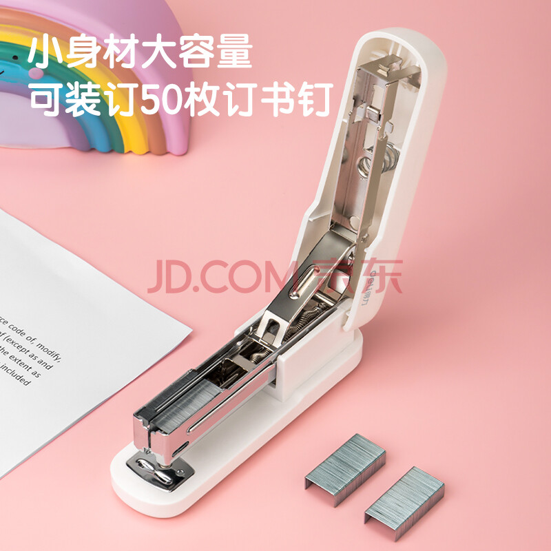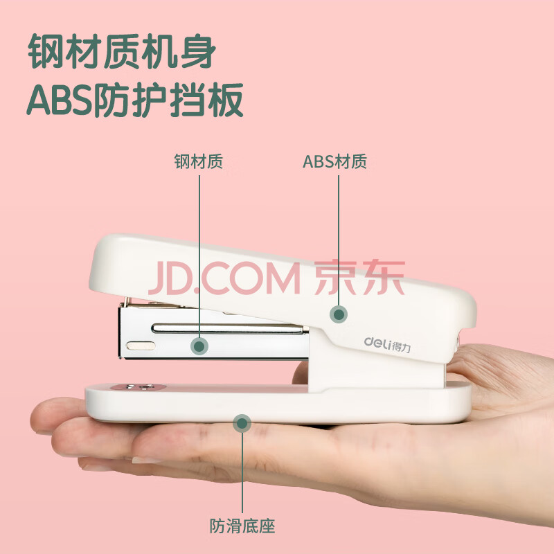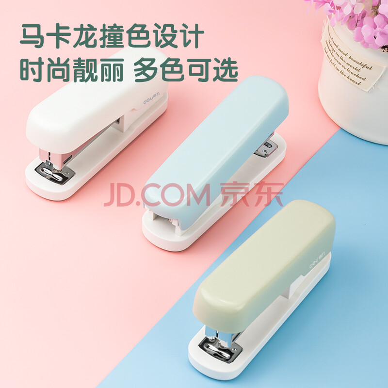 商品相册:得力(deli)12号学生办公订书机 马卡龙色 适配24/6或26/6订书钉 白色 TA301-A第