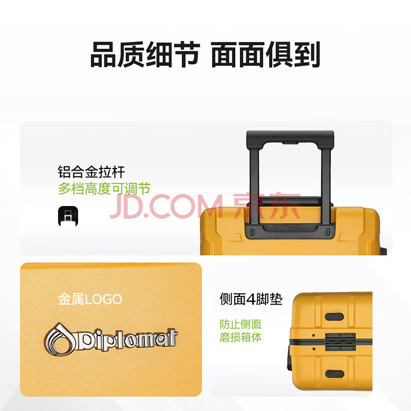 商品相册:Diplomat外交官细铝框拉杆箱旅行箱行李箱20英寸男女密码箱TC-26022黄色第