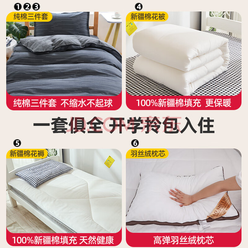 商品相册:云瑾全棉学生被褥套装宿舍床六件套床上用品被子褥子全套1.2米 印象第