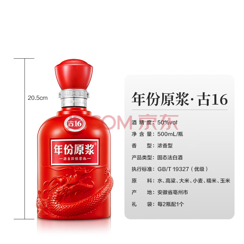 商品相册:古井贡酒 年份原浆古16 浓香型白酒 50度 500mL*1瓶 单瓶装第