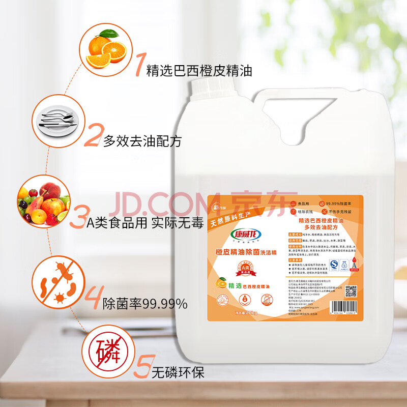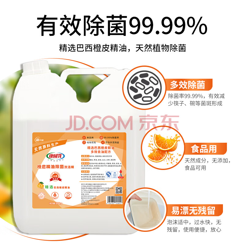 商品相册:康威龙橙皮精油洗洁精20KG 果蔬清洗A类食品用洗洁剂家用大桶装洗碗液第