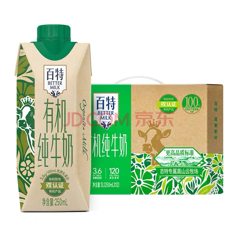 商品相册:天友百特 有机纯牛奶250ml*12盒梦幻盖(礼盒装)120mg高钙 3.6g第